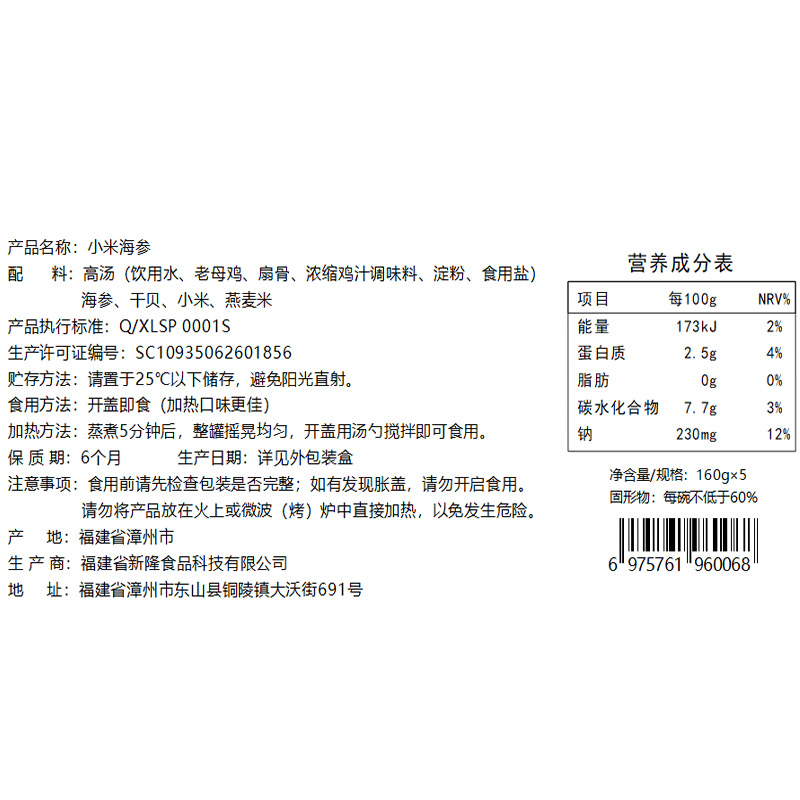 기장을 곁들인 해삼 통조림은 신선한 해삼과 기장의 영양을 결합하여 식감과 맛의 절묘한 즐거움을 선사하는 독특하고 맛있는 선물 선택입니다. 친구와 가족을 위한 선물이든 자신을 위한 선물이든, 귀하의 취향과 관심을 보여주는 독특한 선택입니다.