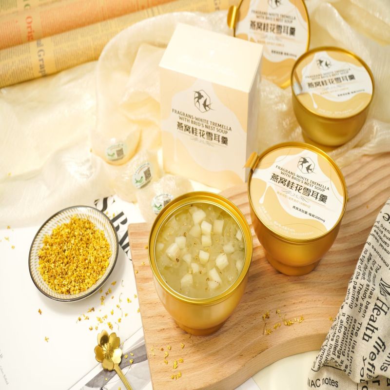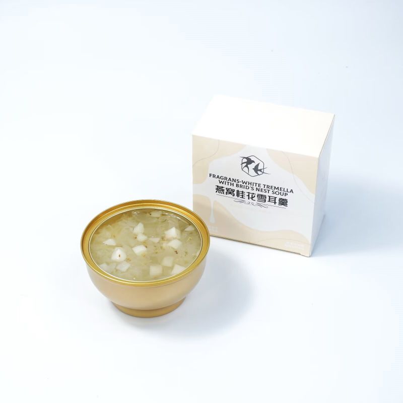 흰목이버섯과 새둥지 수프를 곁들인 프래그랑스 흰목이 수프는 상쾌한 눈 곰팡이, 영양이 풍부한 새둥지, 향긋한 계수나무를 교묘하게 결합한 제품입니다. 콜라겐이 풍부한 최고급 눈 곰팡이를 사용하여 피부와 몸에 수분과 영양을 공급합니다. 국물에 달콤한 향이 나는 계수나무가 들어가 전체적인 맛에 향긋한 향을 더해 색다른 맛을 선사합니다.